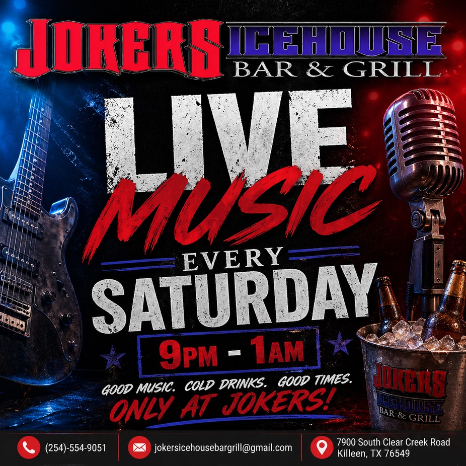 #LiveMusic #SaturdayNight #KilleenTX #JokersIcehouse #BarAndGrill #Nightlife #GoodVibes #TexasNights #DrinkLocal #WeekendVibes